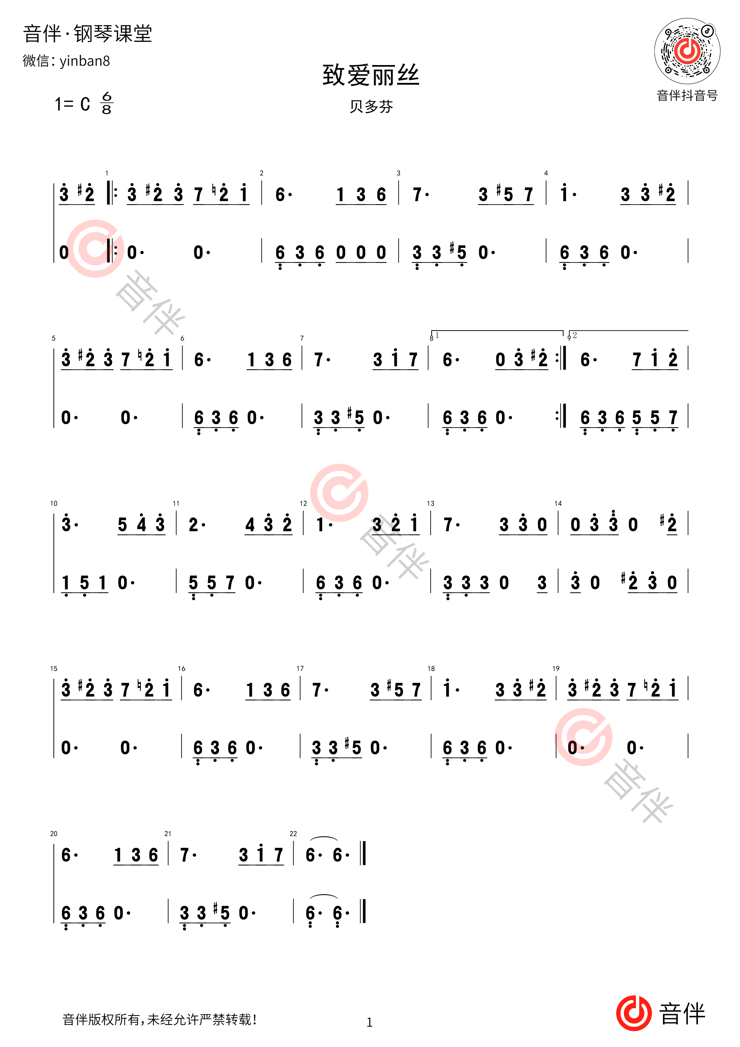 贝多芬致爱丽丝钢琴简谱c调简单版视频教学