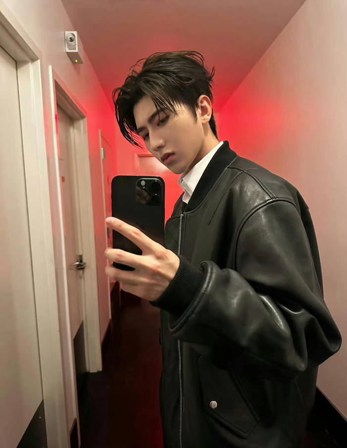 黑色皮衣对镜拍,侧颜很帅 - 可爱蔡徐坤的照片帅气 - 实验室设备网