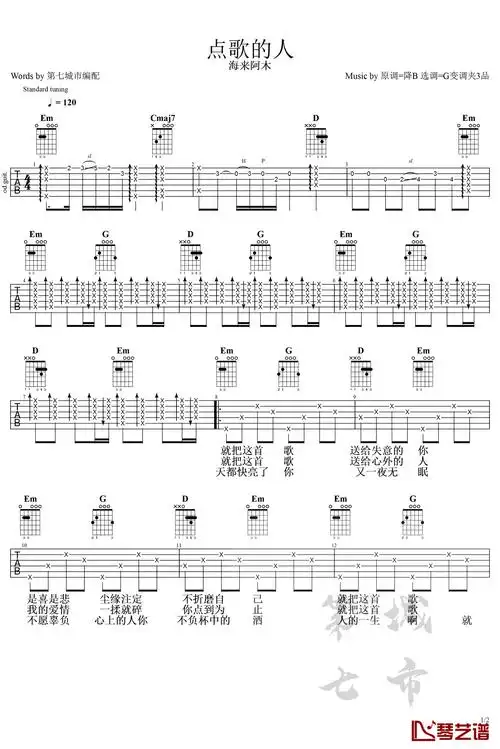 点歌的人吉他谱 海来阿木 g调弹唱谱1