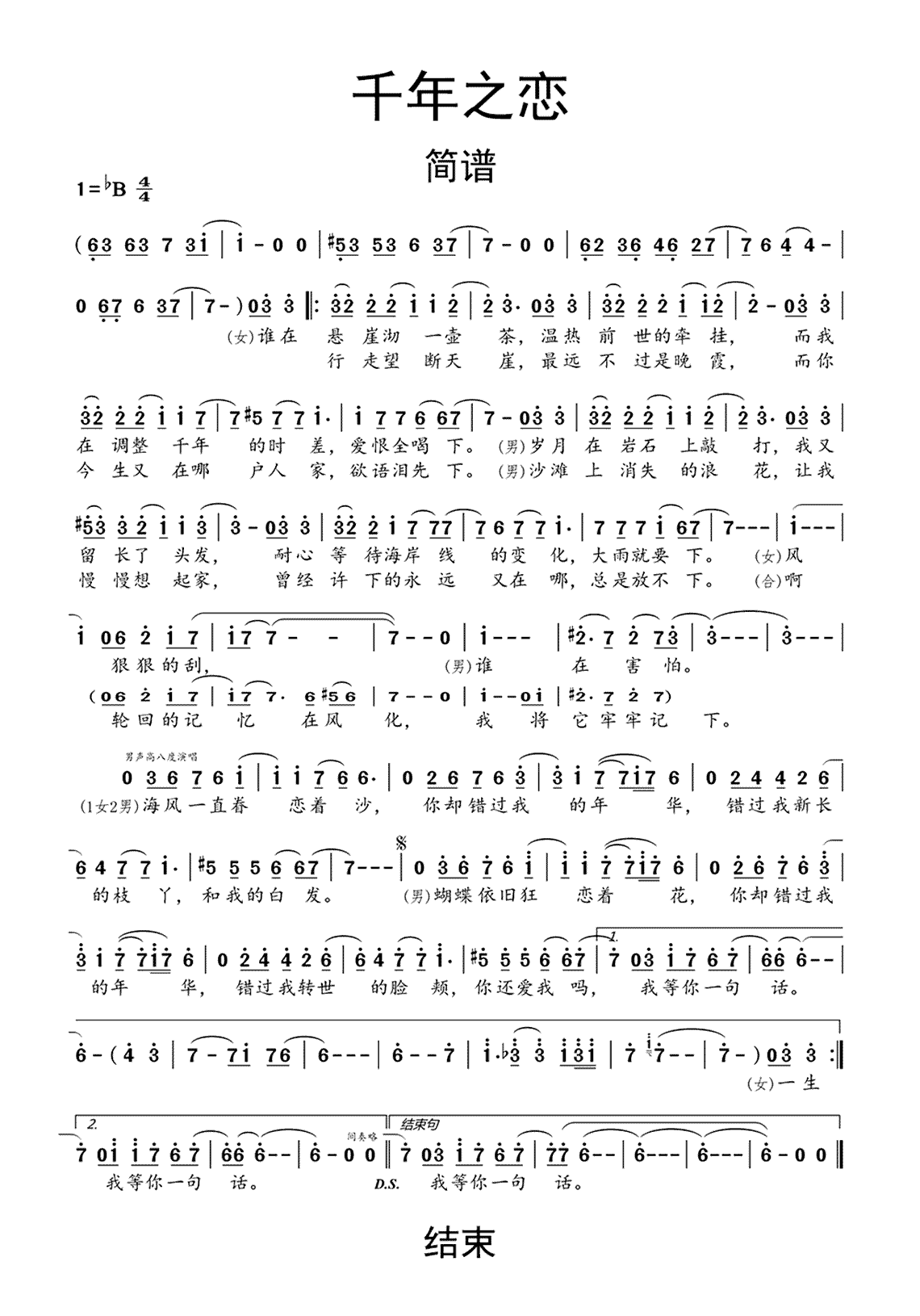 千年之恋_歌谱简谱_哆来咪123曲谱网