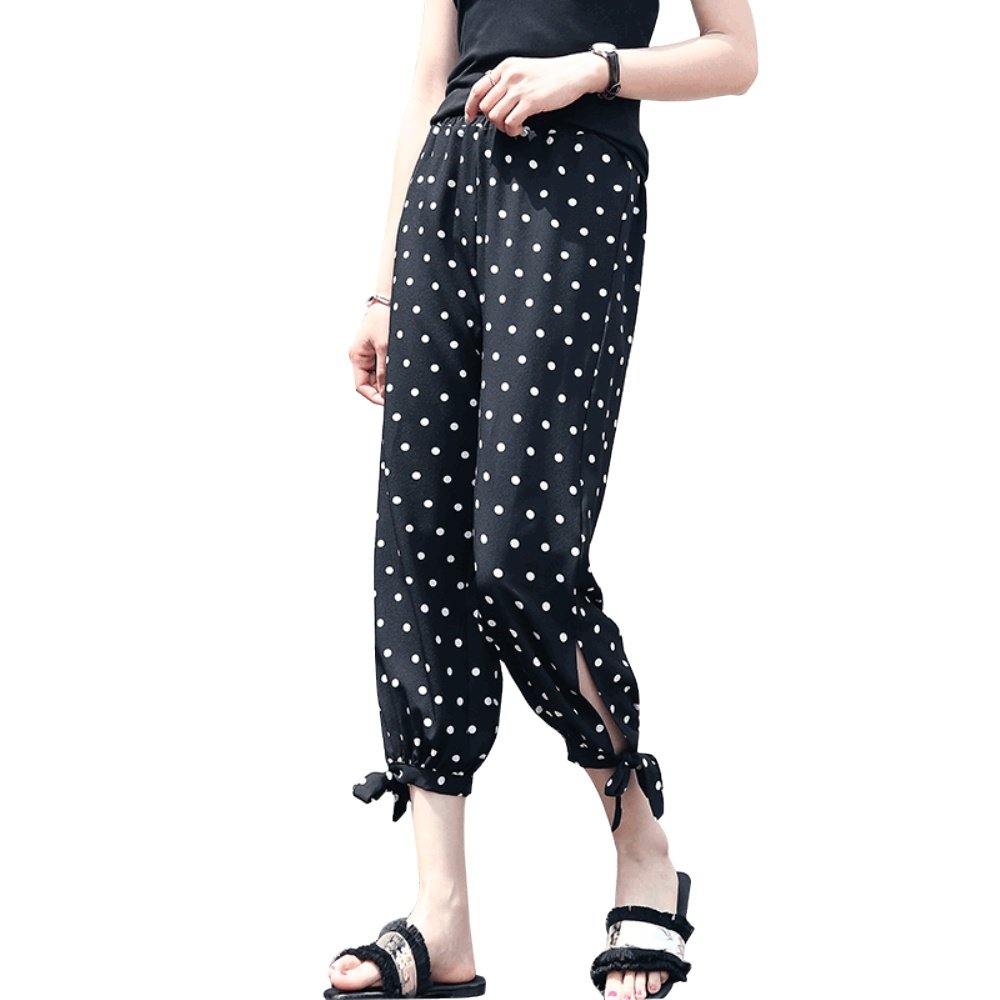 大牌品质雪纺印花灯笼裤子女夏季薄款字母高腰冰丝女裤休闲九分束脚