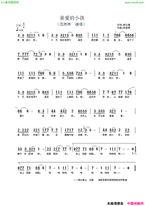 范琳琳——亲爱的小孩简谱
