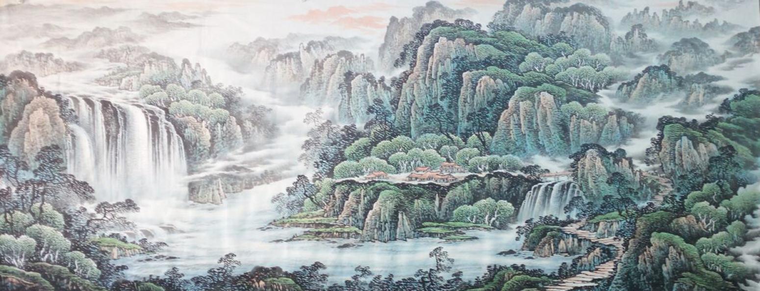 亚明国画高山流水图高清大图下载