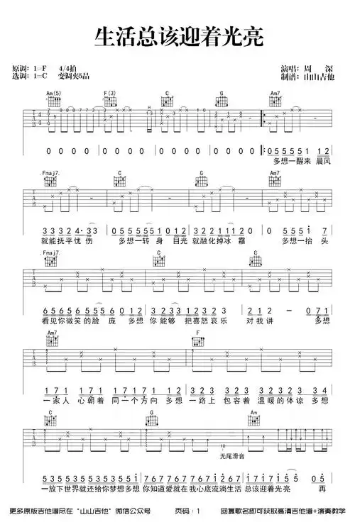 生活总该迎着光亮吉他谱周深c调原版吉他弹唱教学