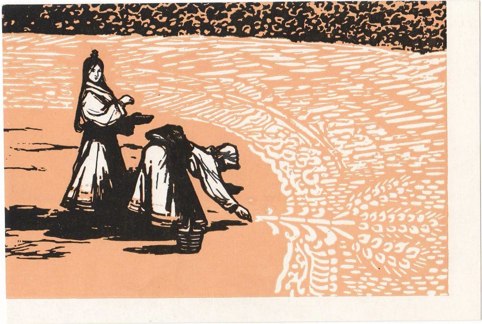 李桦 版画《晚风》 水墨纸本
