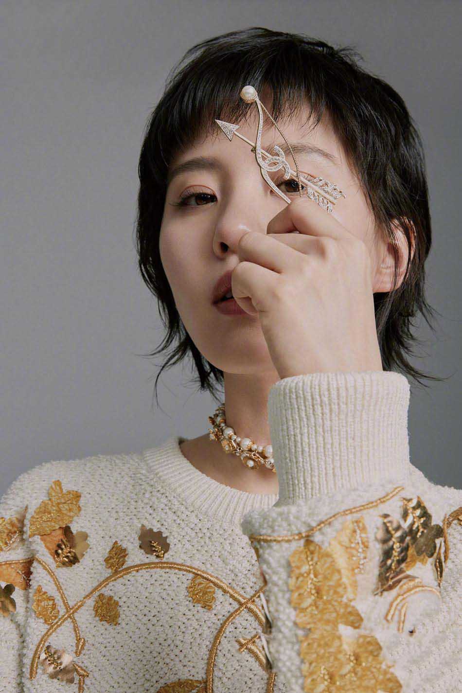 张俪短发造型有些撞脸王子文,不过好在还是挺有辨识度的,牛仔衬衣造型