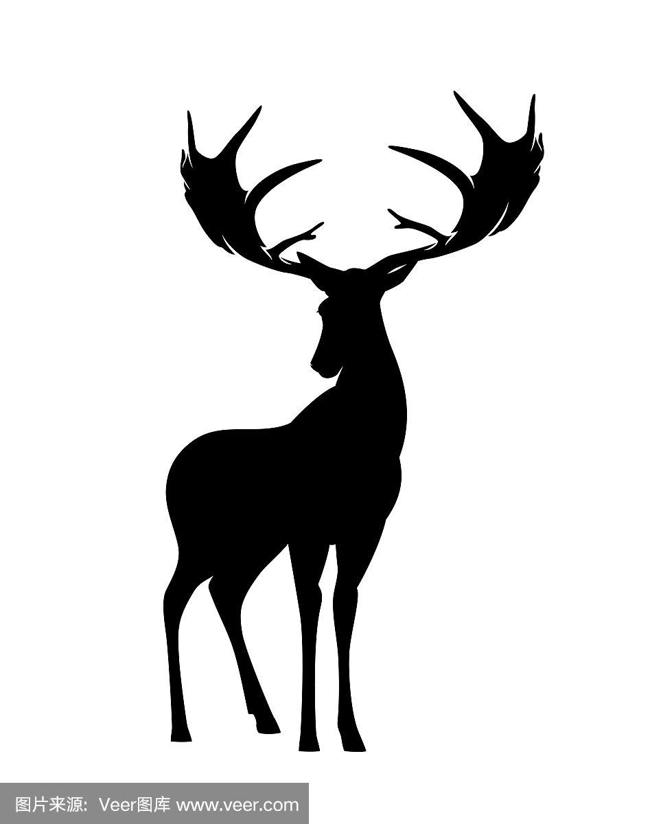 野生动物卡通矢量插画鹿的剪影,矢量图草地上的日本鹿美丽的梅花鹿在