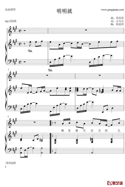 明明就钢琴谱-周杰伦-墨川-虫虫钢琴