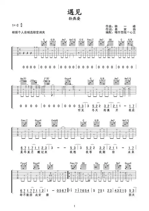 孙燕姿《遇见》吉他谱 c调最好的版本第1张