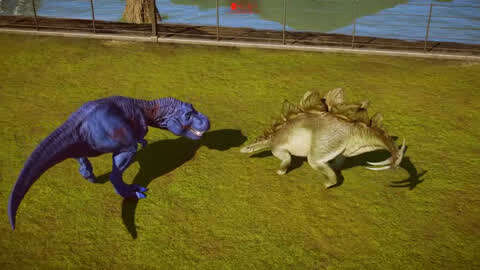 侏罗纪世界:霸王龙对战剑龙,谁的实力更强