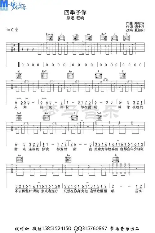 四季予你吉他谱_程响_c调_吉他弹唱谱