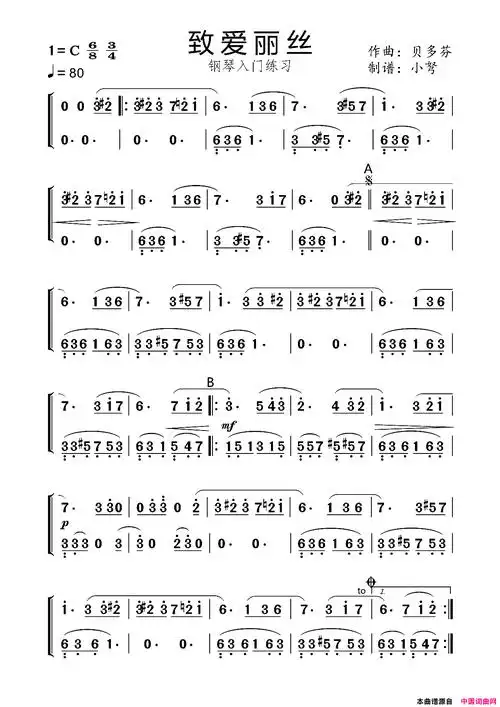 致爱丽丝简谱 贝多芬 双手谱