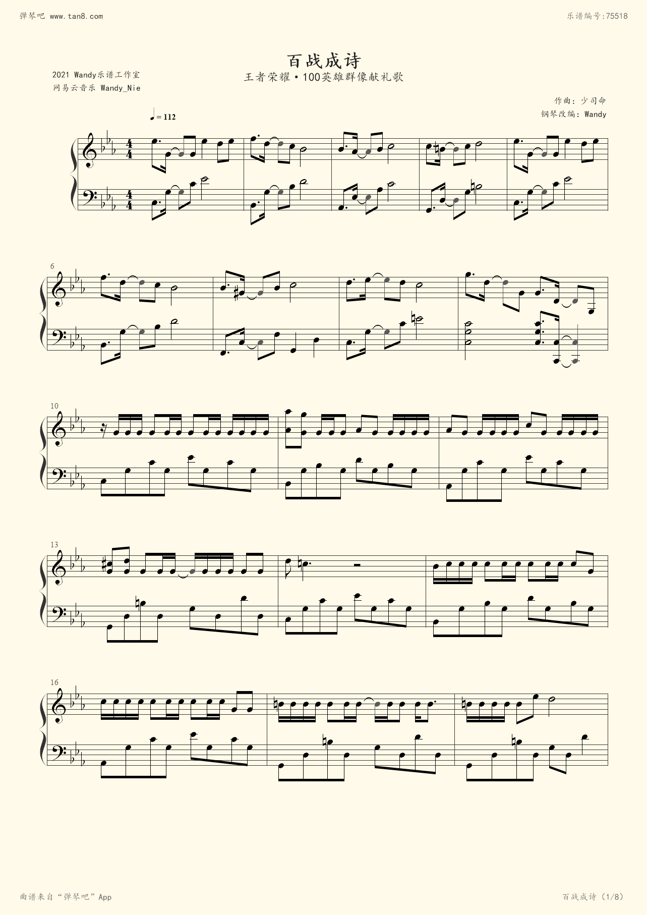 钢琴谱百战成诗王者荣耀100英雄群像献礼歌