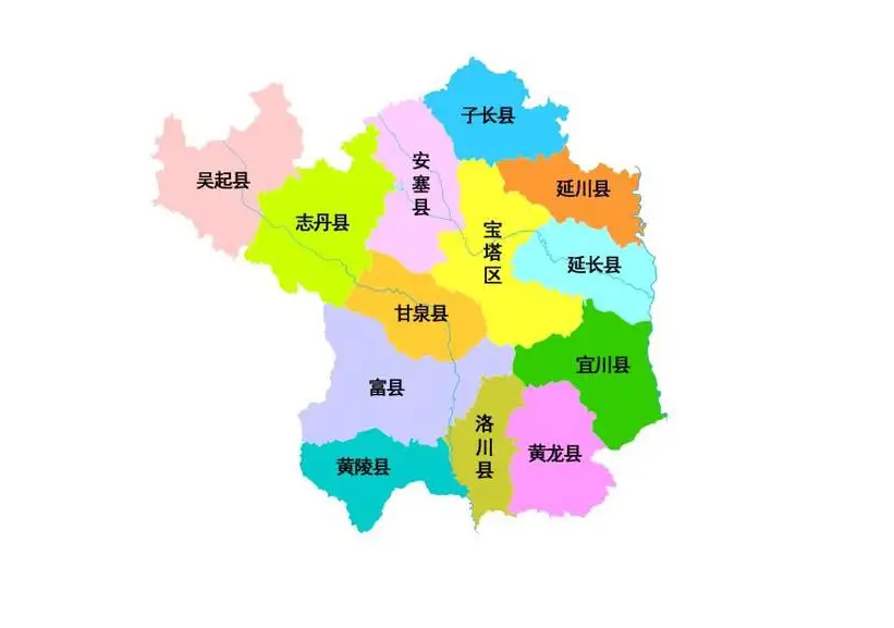 延安全市划分为 2个区:宝塔区,安塞区; 10个县:黄陵县,黄龙县,宜川