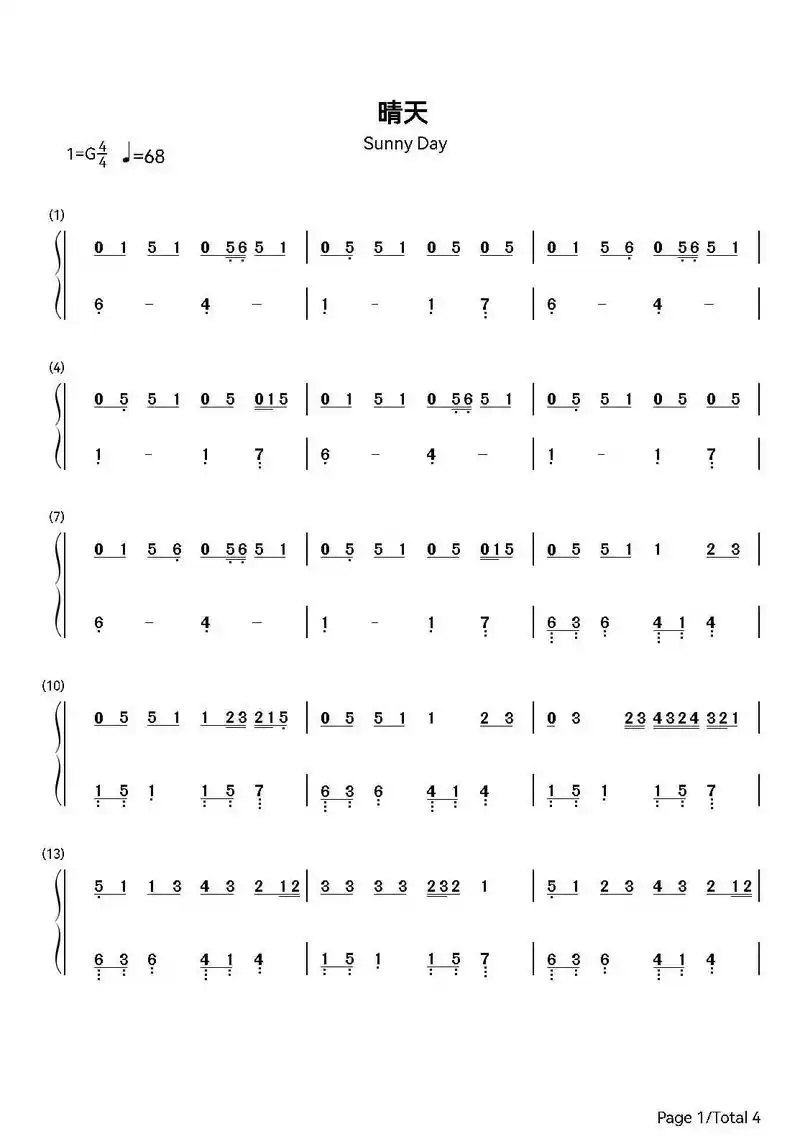 晴天周杰伦钢琴双手简谱原版钢琴谱钢琴简谱