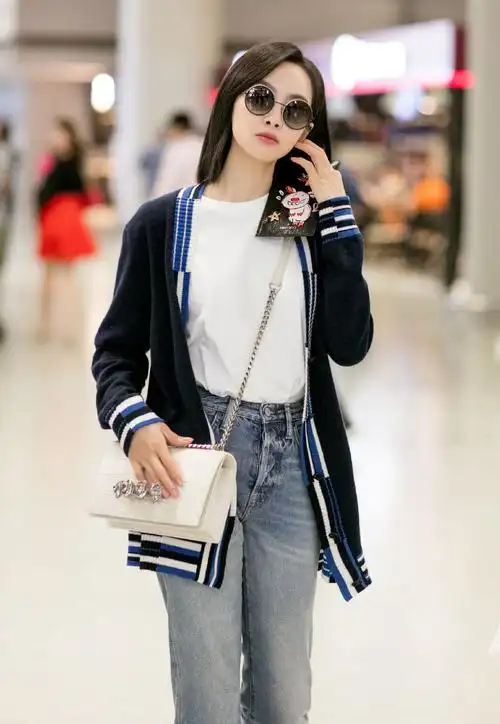 宋茜身着潮装现机场唇红齿白美爆了, 每一张都是美颜暴击!