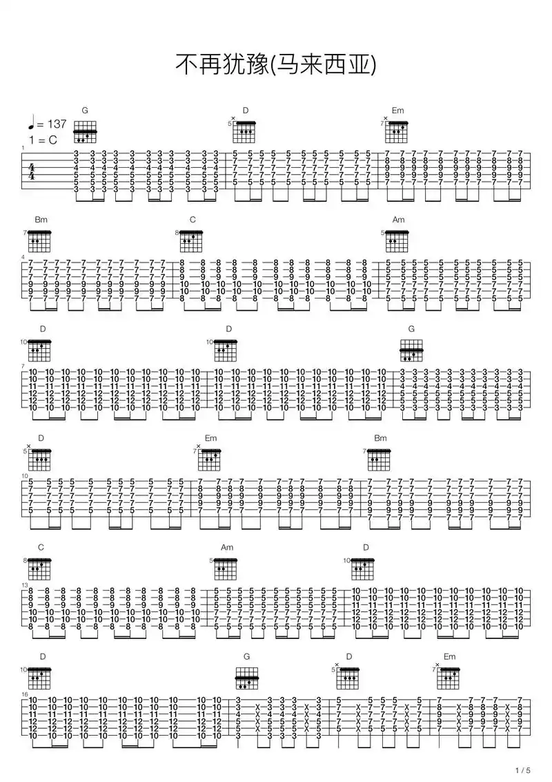 不再犹豫双吉他谱#吉他谱分享 #吉他谱 #前奏一响拾起多少人 - 抖音