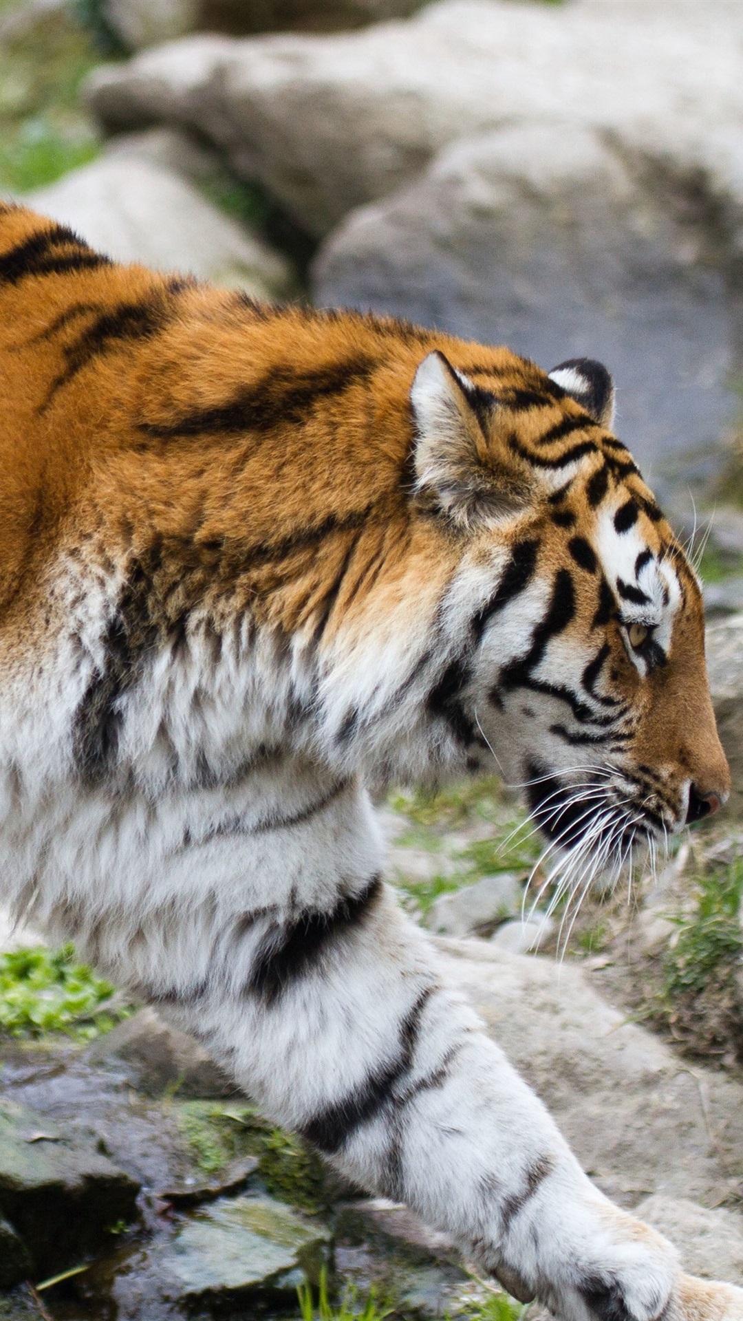 东北虎走,石头 1080x1920 iphone 8/7/6/6s plus 壁纸,图片,背景,照片