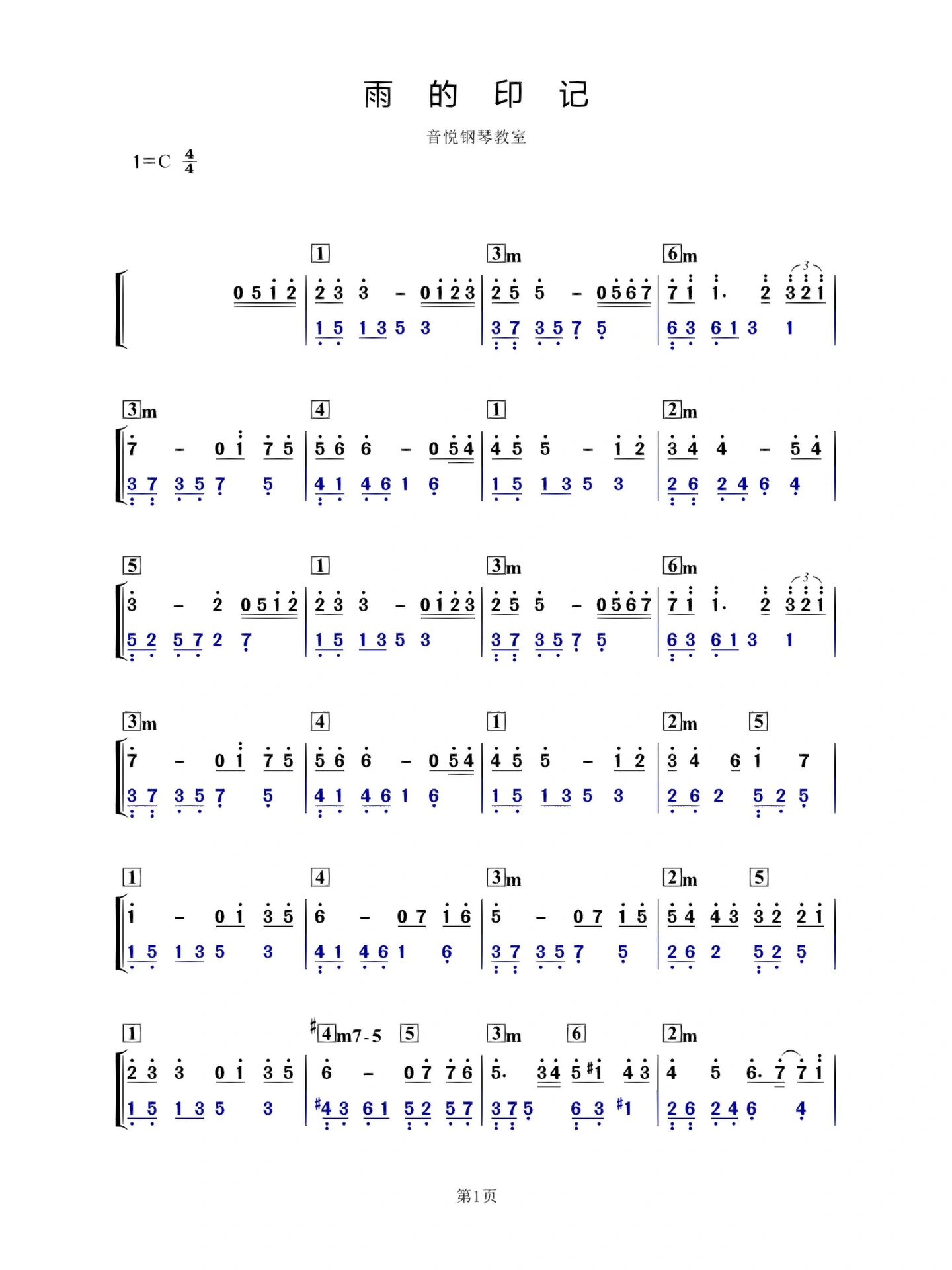 雨的印记 钢琴双手简谱 原版 钢琴谱 钢琴简谱