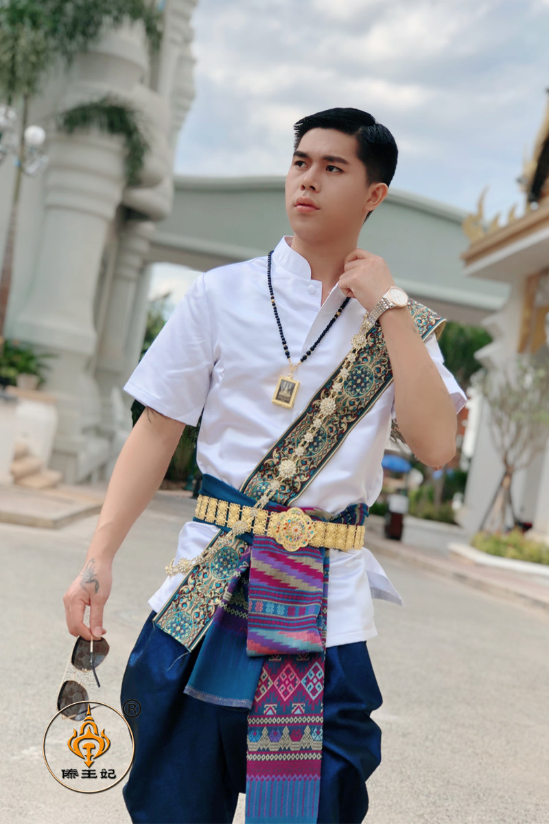 傣王妃服饰泰国服装男立领短袖纱笼裤复古影楼拍照旅拍服结婚进口