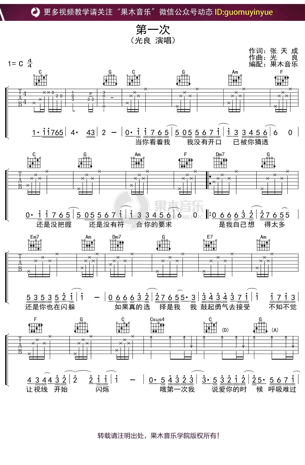 第一次吉他谱光良c调版弹唱吉他谱果木音乐
