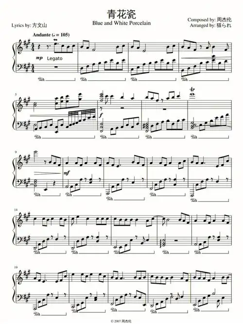 分享乐谱周杰伦青花瓷钢琴谱