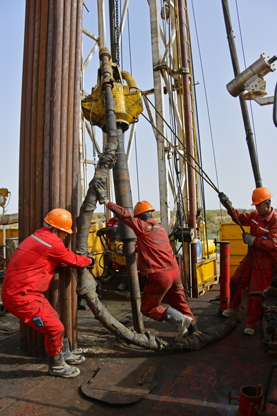 石油工人工作的瞬间.