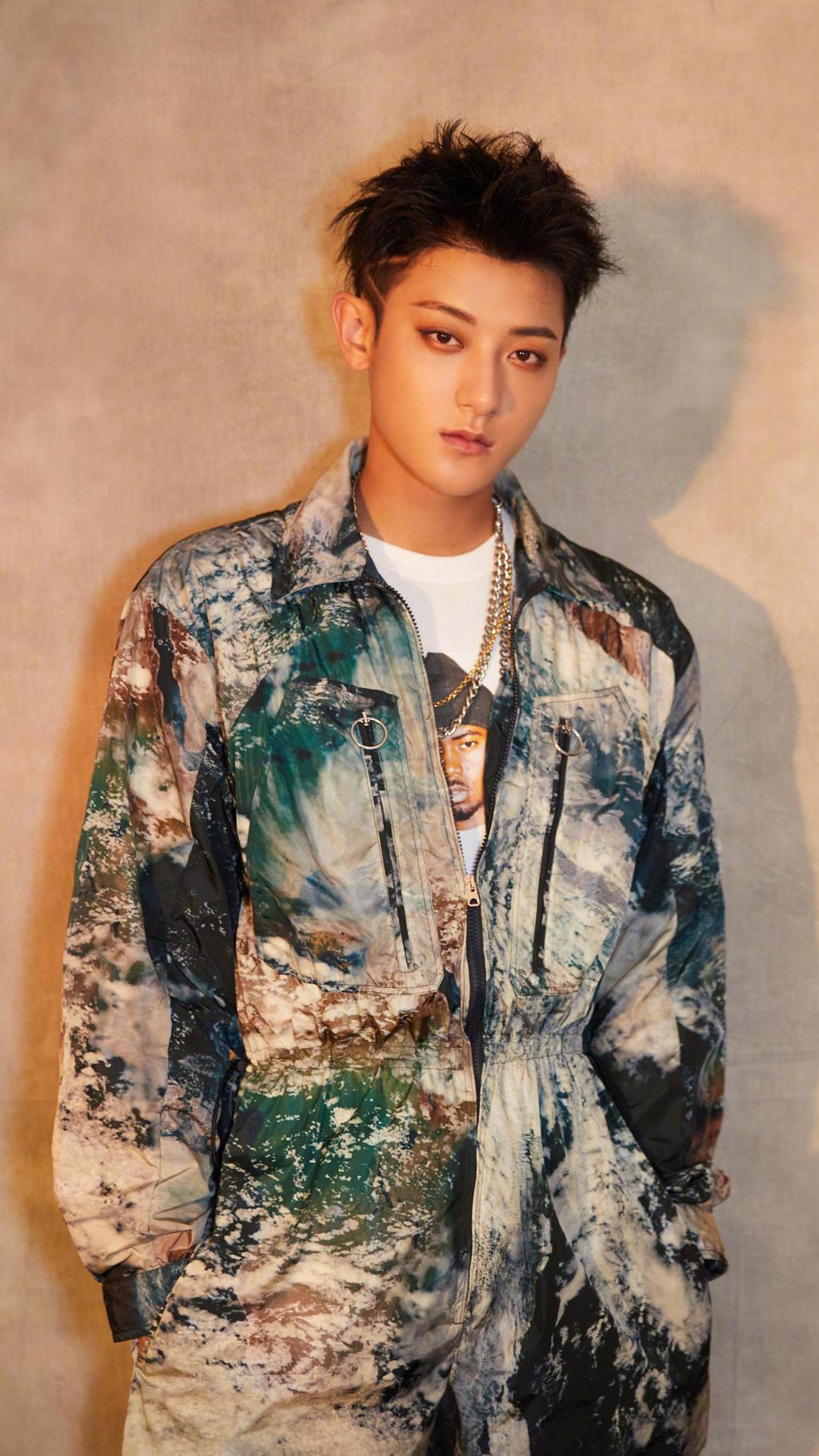 黄子韬酷照黄子韬撞色西装搭配工装裤酷帅有型