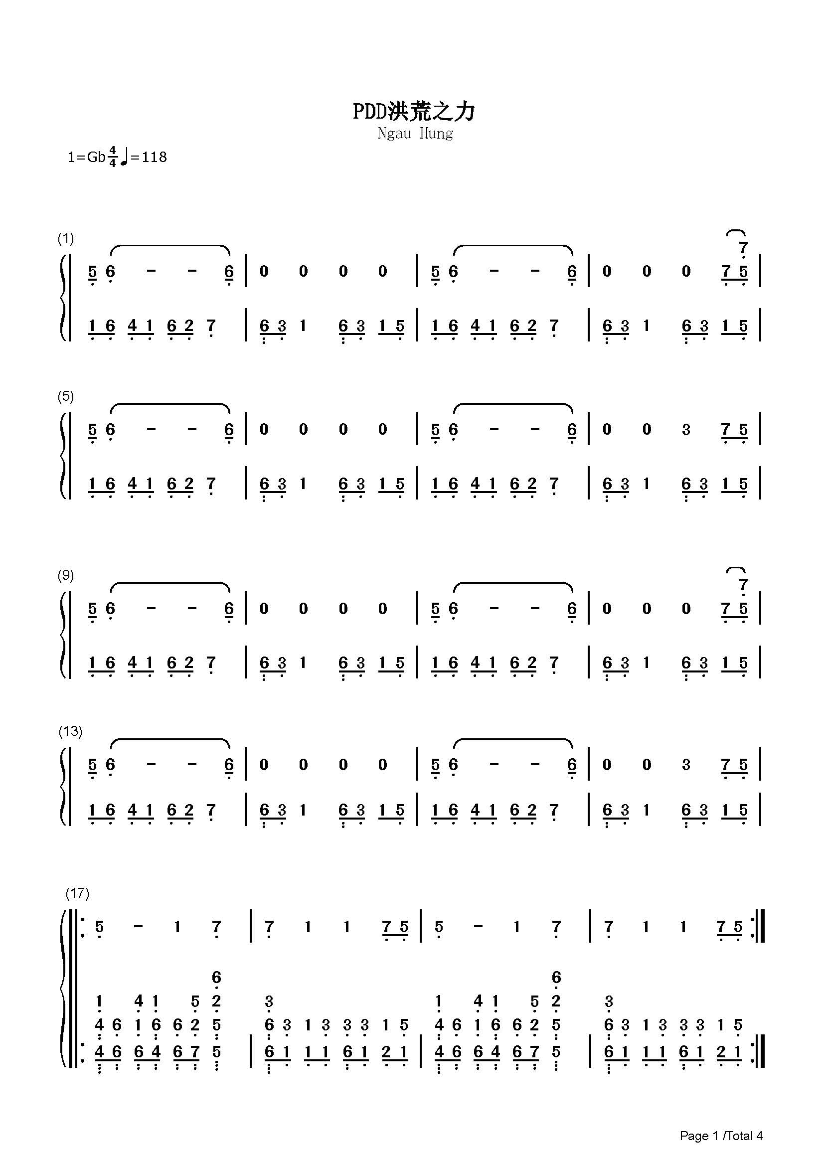 pdd洪荒之力曲谱预览图