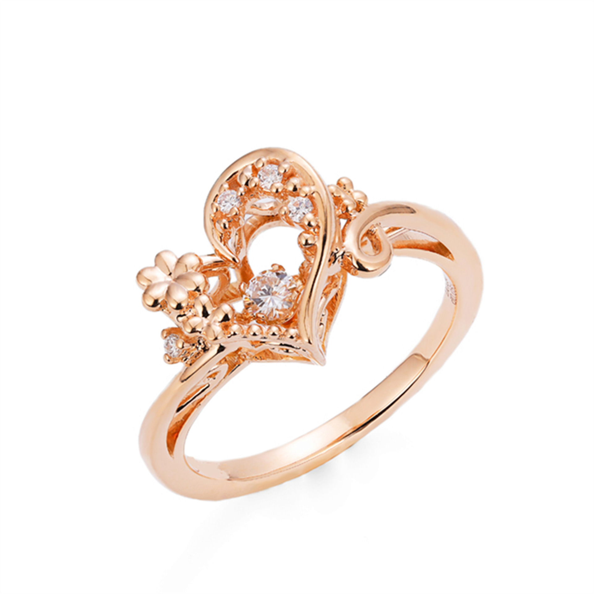 韩版18k镀玫瑰金爱心钻石戒指 镶锆石会跳舞的钻戒复古镂空花指环