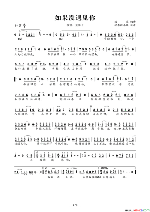 如果没遇见你简谱-龙梅子演唱-潘攀/潘攀词曲1