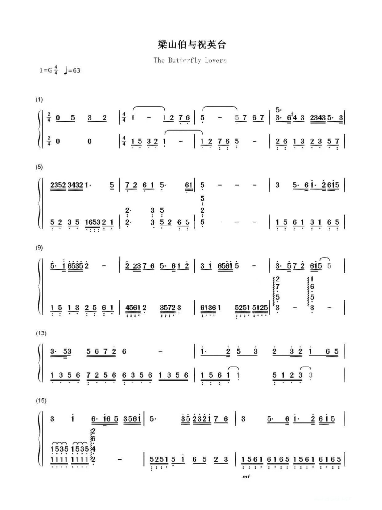 梁山伯与祝英台简谱1