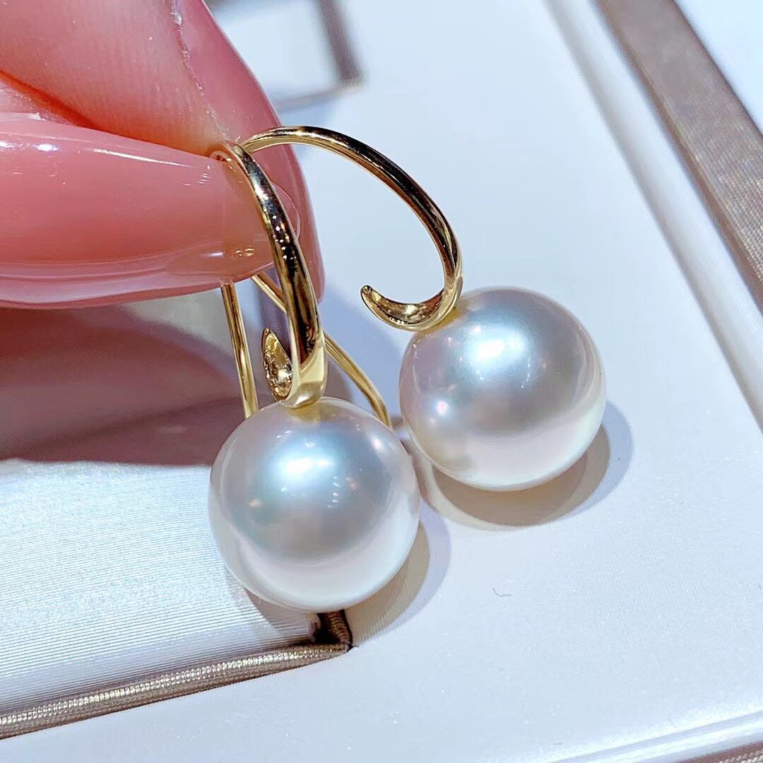 1112mm澳白珍珠耳钉18k金钻石王妃款耳钉