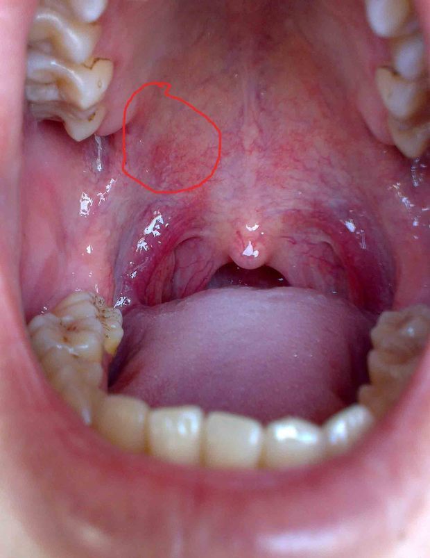 口腔上颚长个硬疙瘩大概一个月左右之前是上颚干疼特别是晚