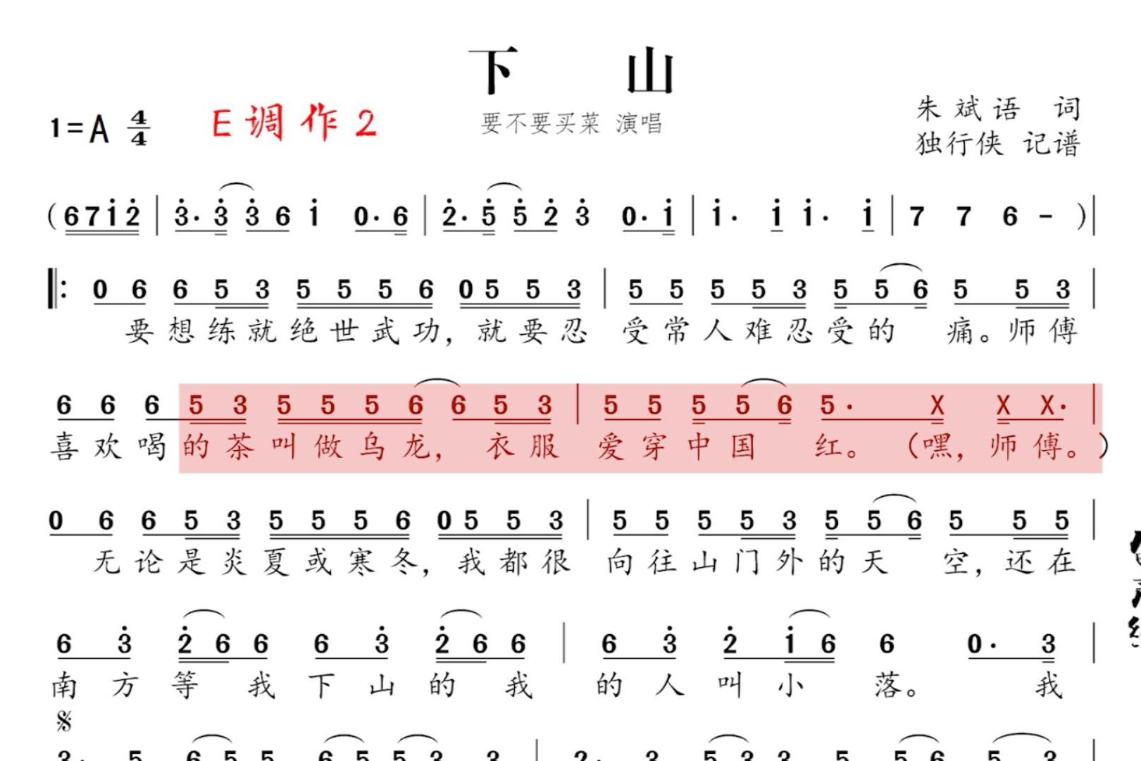 下山简谱(歌词)-要不要买菜演唱-孙世彦曲谱1