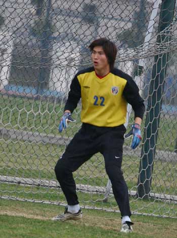 图文上海申花队备战沪港杯足球赛虞伟亮练习扑球