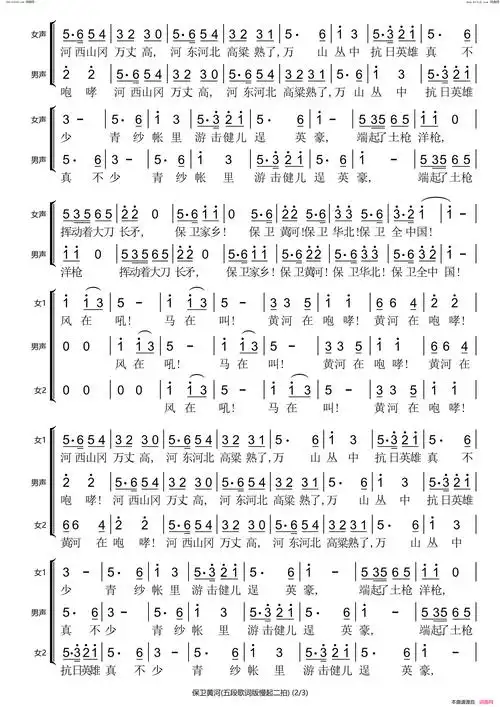 保卫黄河合唱谱