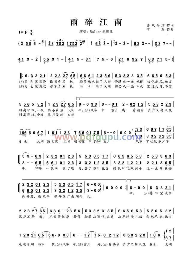 《雨碎江南》简谱-walker