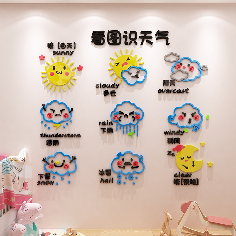 天气预报墙贴幼儿园文化墙面装饰早教中心环创主题儿童3d立体贴靖