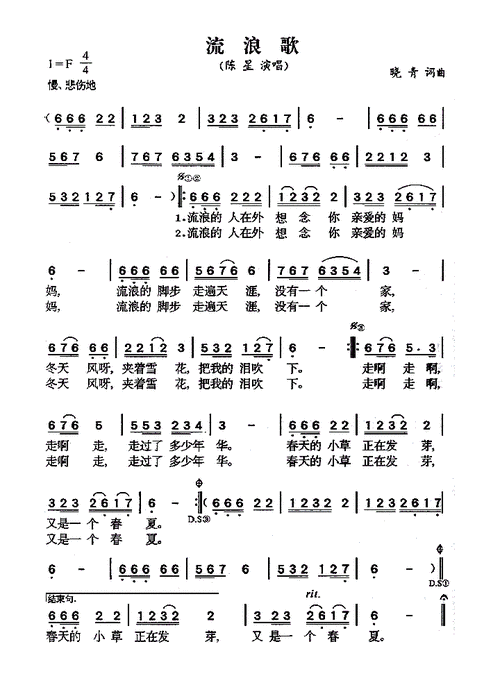 流浪歌简谱-陈星演唱1