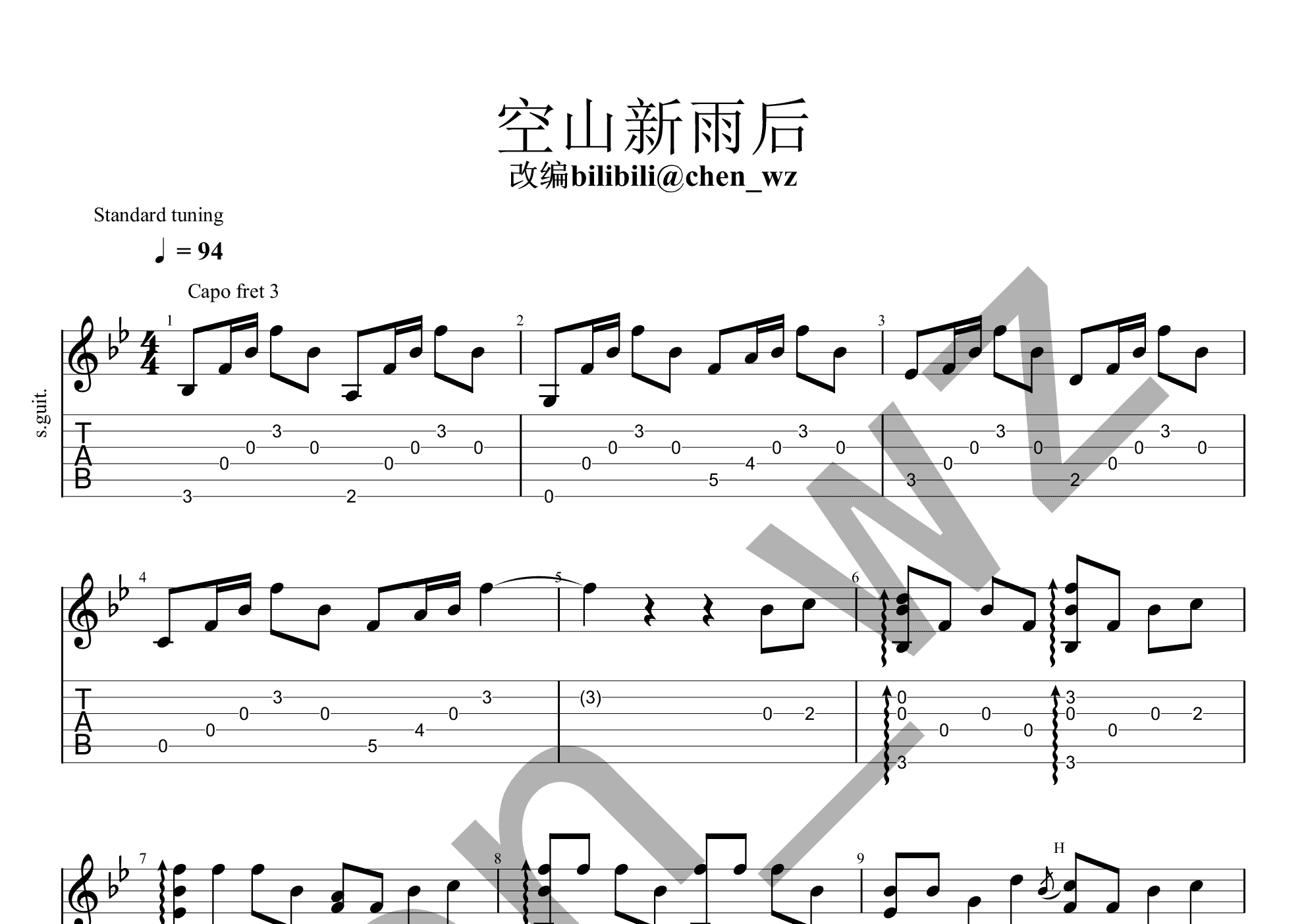 空山新雨后吉他谱_音阙诗听,锦零_g调指弹_老杨教吉他编配 - 吉他世界