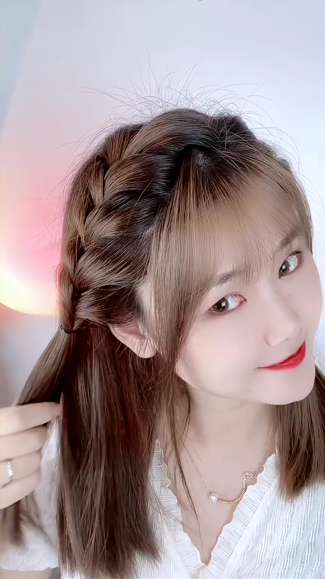 全民最火编发#刘海侧编披肩发,淑女好看气质,主要还很甜美呢!
