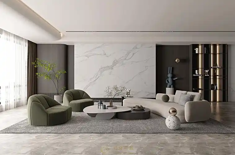 电视背景墙瓷砖现代简约客厅沙发大理石影视墙石材造型岩板电视墙