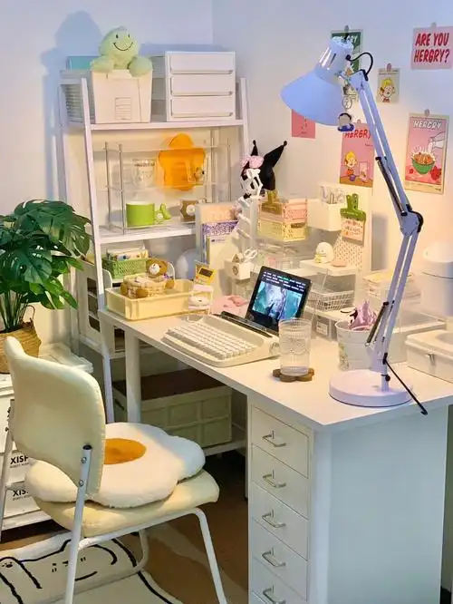 ins风书桌布置丨奶白色氛围感书桌7815