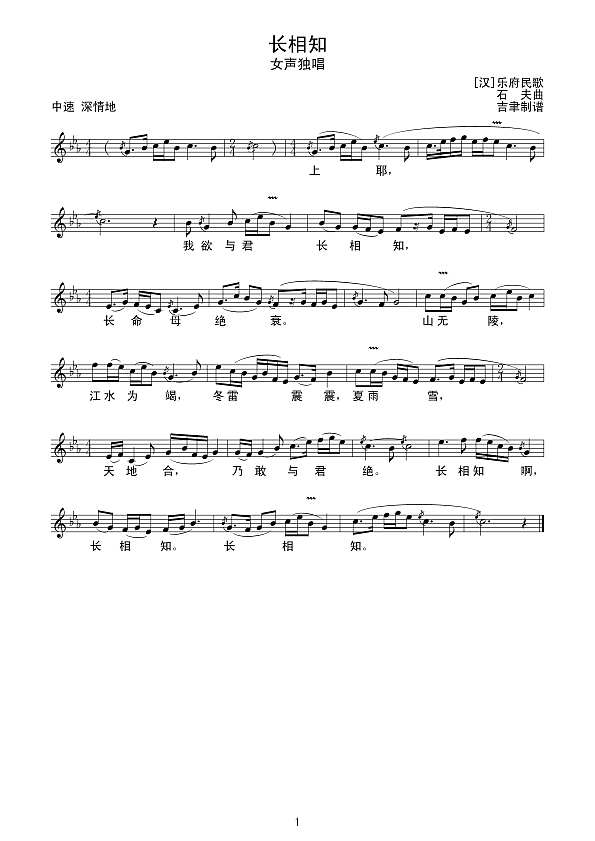 古诗歌曲 长相知下载简谱下载五线谱下载曲谱网曲谱大全中国曲谱网
