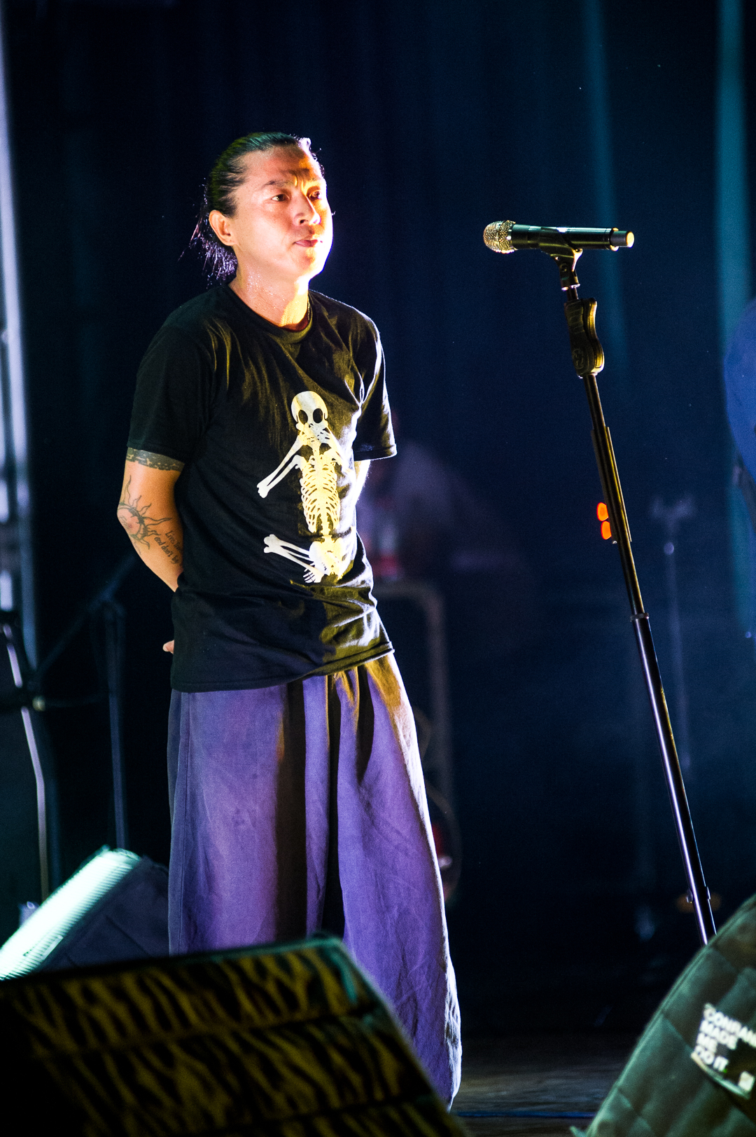 郁乐队成员在舞台上表演(8月24日摄).↑痛仰乐队成员在舞台上表演