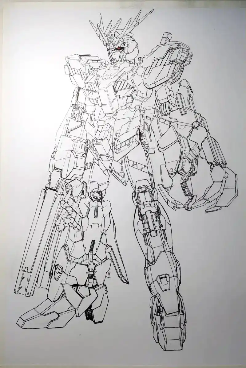 高达 #独角兽高达 #绘画 #黑白画 #线描