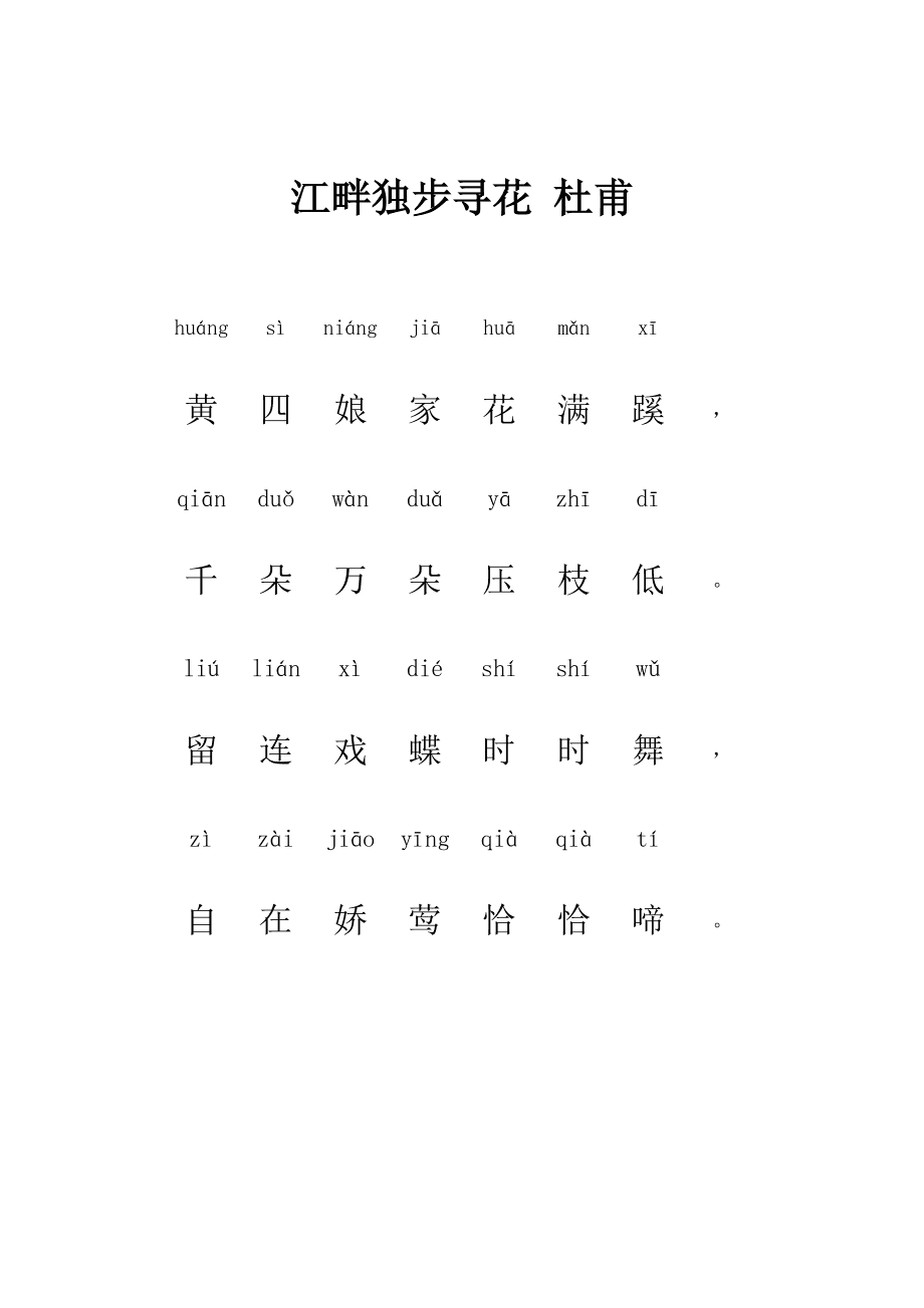 古诗文学习028:四年级下册,杜甫《江畔独步寻花》