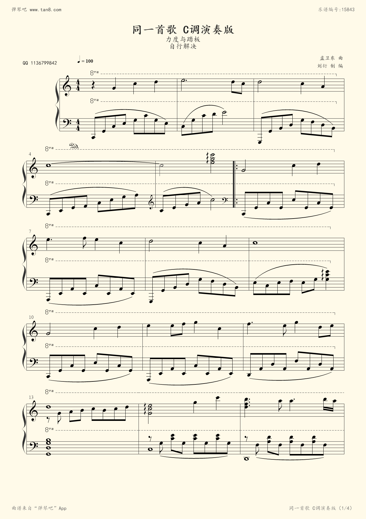 同一首歌五线谱预览1-钢琴谱文件(五线谱,双手简谱,数字谱,midi,pdf)