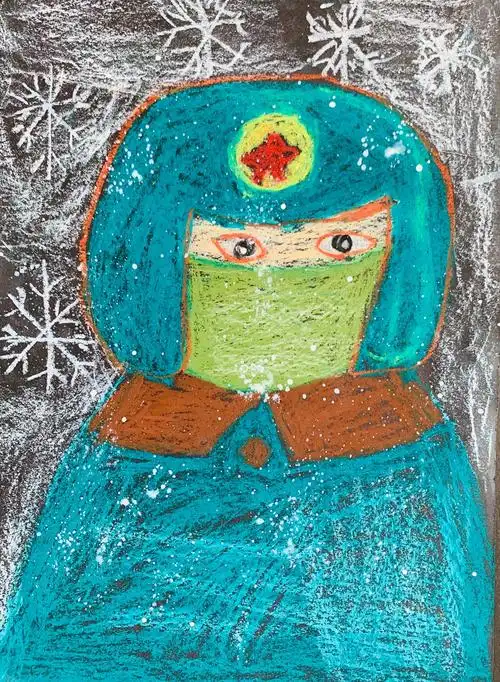 致敬戍边英雄儿童画